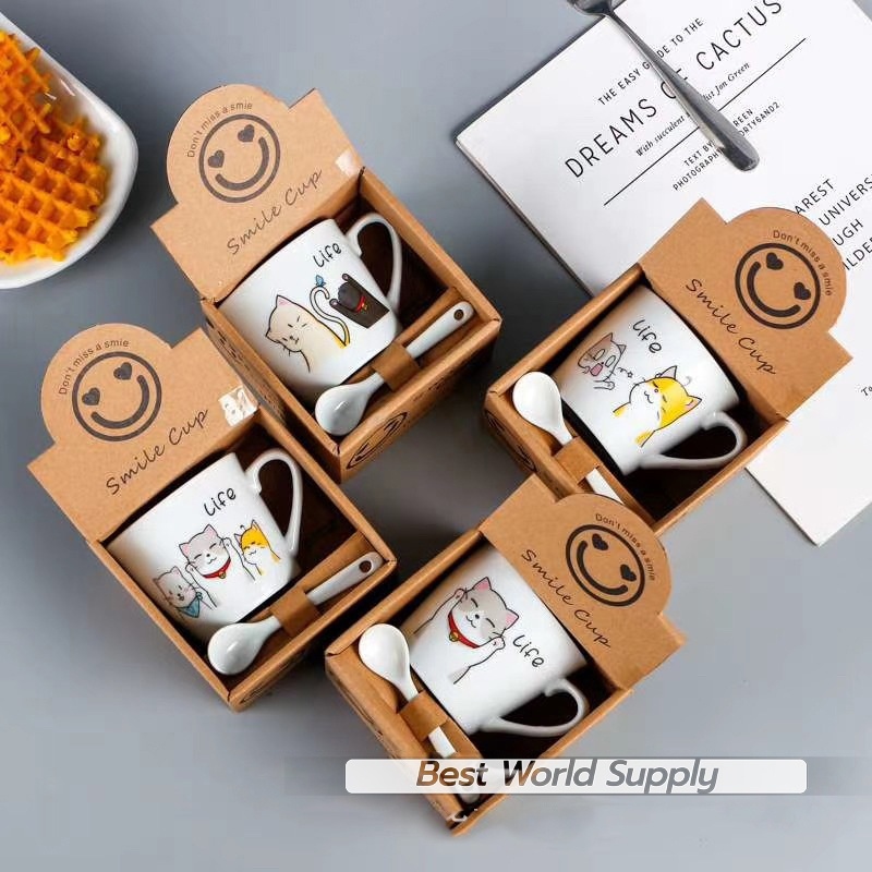 ชุดแก้วเซรามิก (คละลาย) แก้วพร้อมช้อน ชุดของขวัญขนาดเล็ก แก้วกาแฟ สไตล์มินิมอล ☕