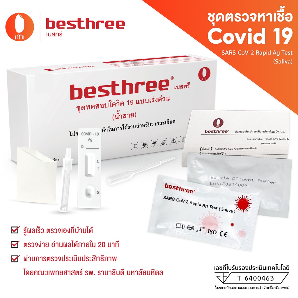 ชุดตรวจ ATK น้ําลาย เเม่นยำ 100%(ยี่ห้อBesthree) ชุดตรวจโควิด 19 ชุดตรวจโควิด atk ลูกค้าให้คะแนน 711 ราคาตอนนี้ 25 บาท ราคาเดิมที่ขาย 89 บาท ลดราคาถึง 72% อัพเดทล่าสุดเมื่อ 13/02/2023 สินค้าจัดส่งมาจาก Shopee.co.th