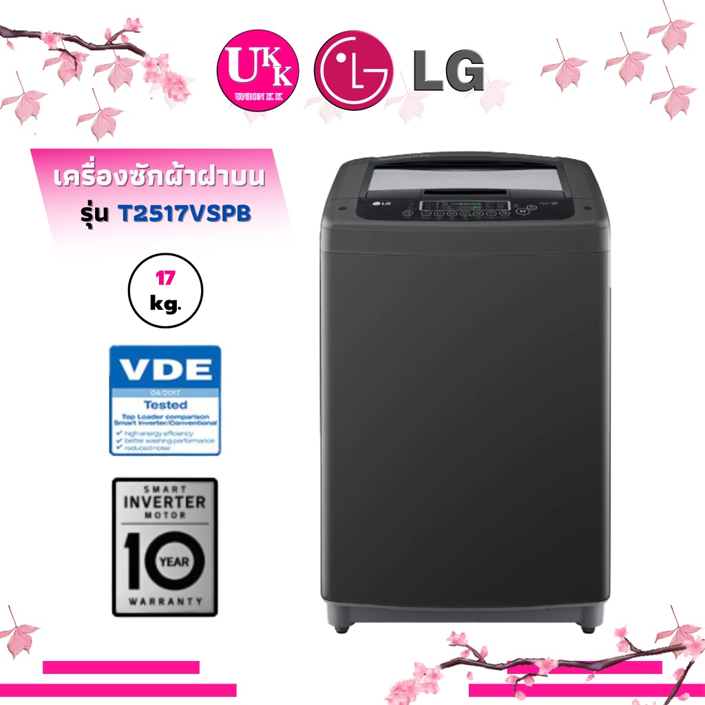 LG เครื่องซักผ้า รุ่นใหม่ ฝาบน รุ่น T2517VSPB ขนาด 17 กก.สีใหม่เทาดำ Smart Inverter T2517VSAB 2517VS T2517