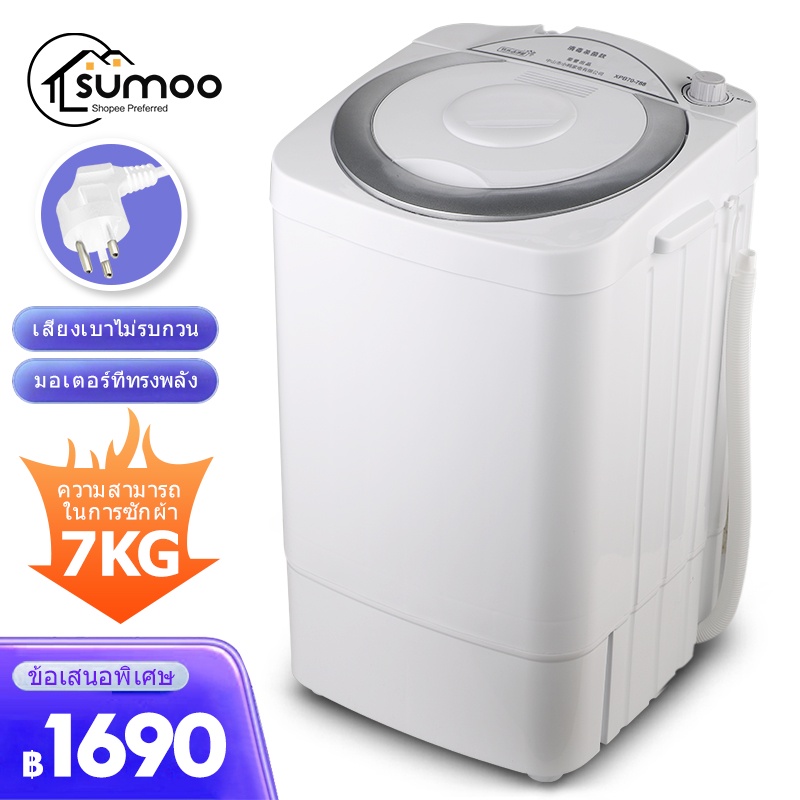 Sumoo เครื่องซักผ้า 4.5KG เครื่องซักผ้ามินิ เครื่องซักผ้าถังเดียว 7KG เครื่องซักผ้ามินิกึ่งอัตโนมัติ
