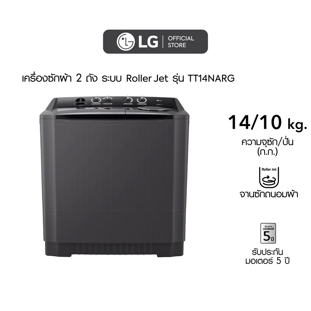 LG เครื่องซักผ้า 14 กิโล รุ่นTT14NARG.DBMPETH เครื่องซักผ้า 2 ถัง