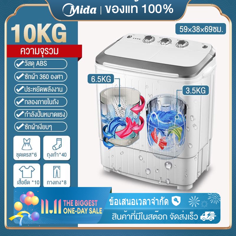 【ราคาโปรโมชั่น】ความจุรวม10/8.5/6.5KG เครื่องซักผ้ากึ่งอัตโนมัติเครื่องซักผ้างคู่ในครัวเรือนขนาดเล็ก ซักทุกคราบ ใช้งานง่า