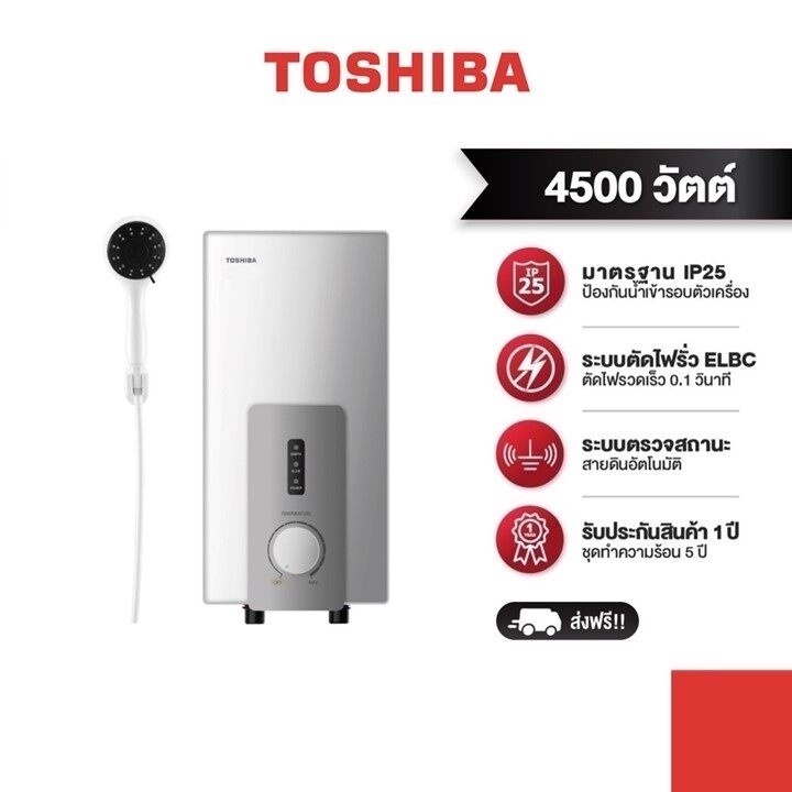 TOSHIBA เครื่องทำน้ำอุ่น รุ่น DSK45S5KW ลูกค้าให้คะแนน 479 ราคาตอนนี้ 2690 บาท ราคาเดิมที่ขาย 2890 บาท ลดราคาถึง 7% อัพเดทล่าสุดเมื่อ 09/04/2023 สินค้าจัดส่งมาจาก Shopee.co.th