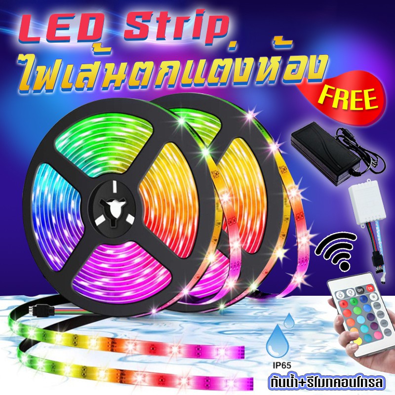ไฟแต่งห้อง รุ่น5050 2835 ไฟเส้น RGB ไฟริบบิ้น ไฟตกแต่งห้อง LED Strip Light IP65 ไฟตกแต่ง รีโมท 24 ปุ่ม