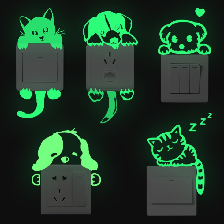 สติกเกอร์ ลายการ์ตูน น่ารัก เรืองแสงที่มืด สำหรับตกแต่งแผงสวิตช์ไฟ