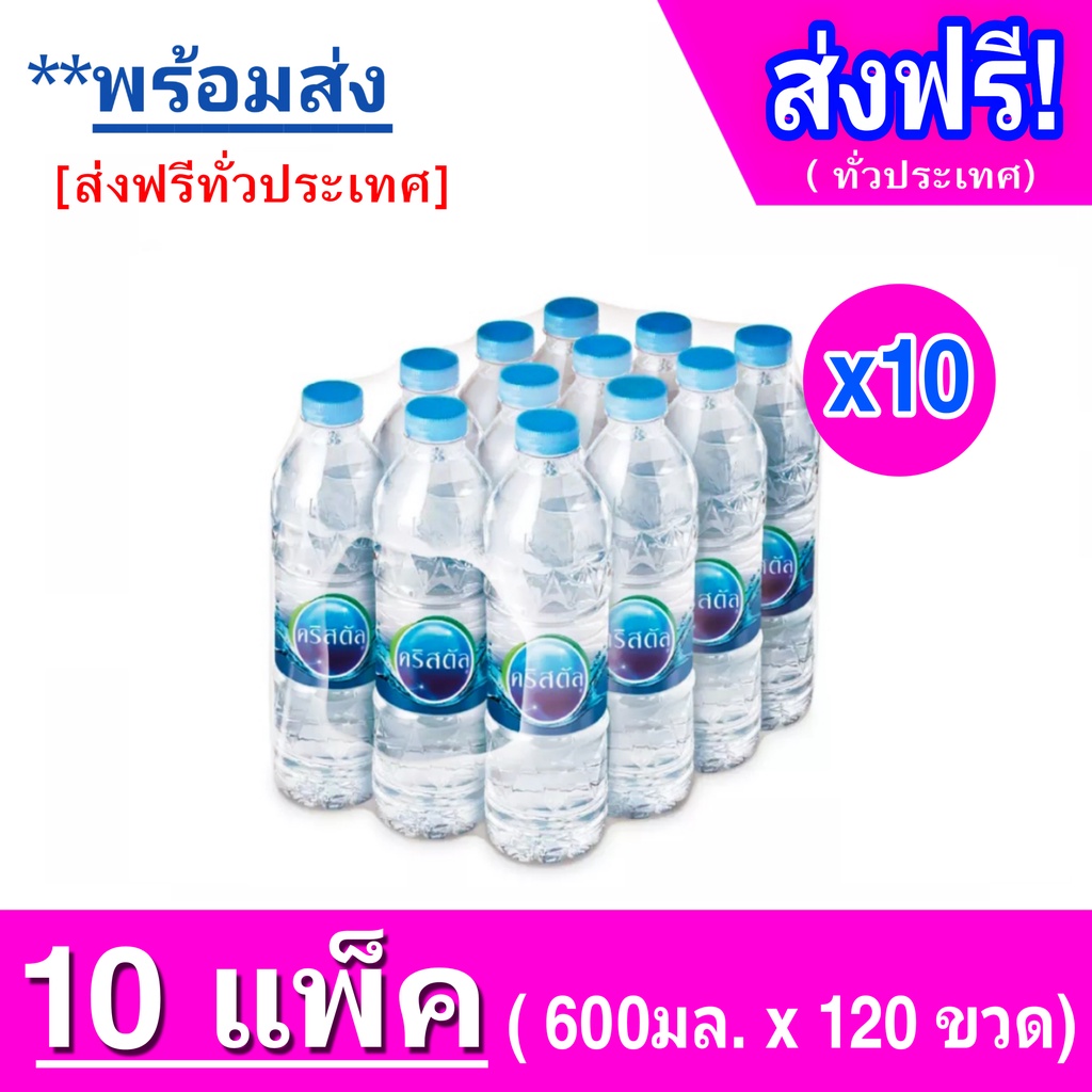 น้ำดื่ม คริสตัล ขนาด 600 มล. แพ็ค12 ขวด รวมทั้งหมด 120 ขวด
