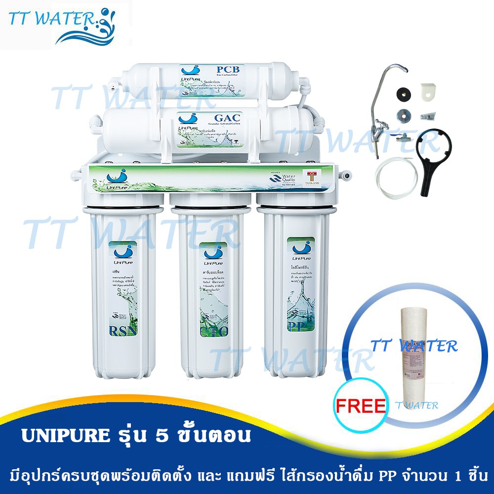 UNI PURE เครื่องกรองน้ำ 5 ขั้นตอน แถมฟรี ไส้กรองน้ำ PP 1 ชิ้น