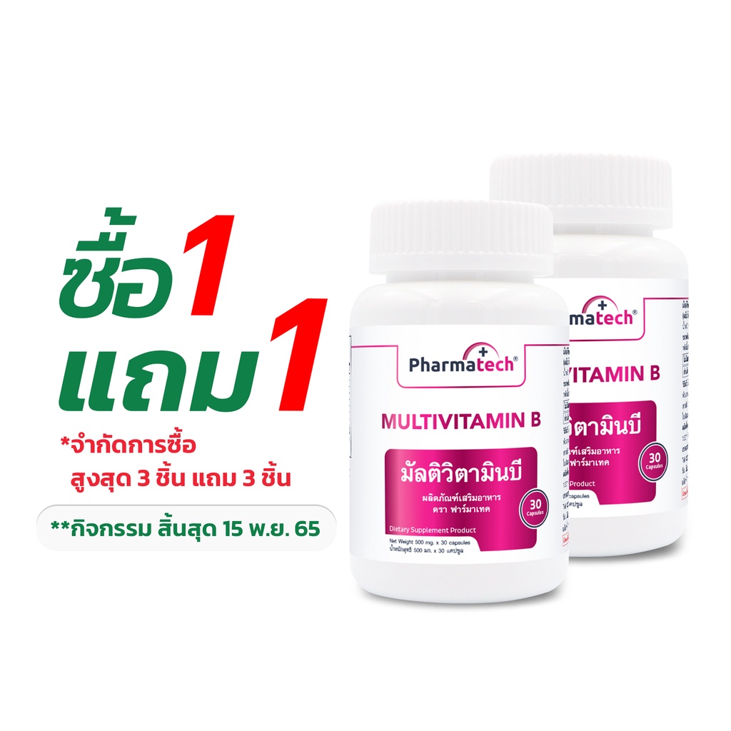 [ซื้อ 1 แถม 1] วิตามินบีรวม มัลติวิตามินบี Multivitamin B ฟาร์มาเทค Pharmatech Vitamin B complex B1 B2 B3 B5 B6 B7 B9B12