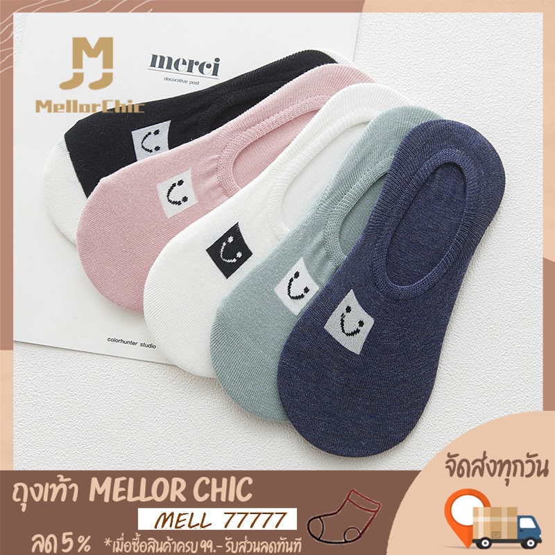 Mellor Chic : Short Socks 1Pair ถุงเท้าแบบสั้น ถุงเท้าข้อสั้น ราคาต่อ 1 คู่ ผ้านุ่มใส่สบาย ถุงเท้าลายยิ้มน่ารัก ลูกค้าให้คะแนน 1078 ราคาตอนนี้ 9 บาท ราคาเดิมที่ขาย 29 บาท ลดราคาถึง 69% อัพเดทล่าสุดเมื่อ 10/11/2022 สินค้าจัดส่งมาจาก จังหวัดกรุงเทพมหานคร