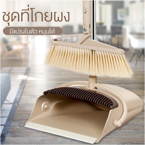 YYชุดไม้กวาดไม้กวาด หมุนได้ มีแปรงในตัวพร้อมที่ตักขยะ YF-1157