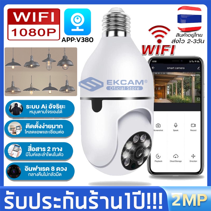กล้องวงจรปิดไร้สาย 2 ล้านพิกเซล WIFI กล้องวงจรปิดในบ้าน ดูผ่านโทรศัพท์ ควบคุมระยะไกล 360 องศา รับภาษาไทยAPP:V380
