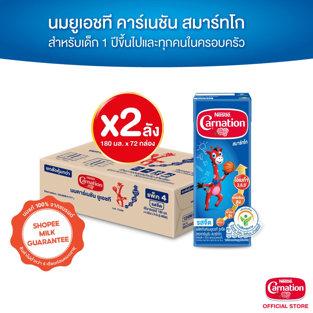 CARNATION นมยูเอชที คาร์เนชัน สมาร์ท โก รสจืด