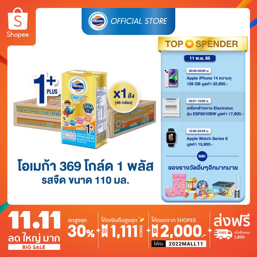 [ขายยกลังx1] โฟร์โมสต์ โอเมก้า 369 โกลด์ 1 พลัส รสจืด 110 มล (48 กล่อง/ลัง) Foremost Omega 369 Gold 1 Plus Plain 110ml (นมกล่องUHT) ลูกค้าให้คะแนน 4.9 ราคาตอนนี้ 0 บาท ราคาเดิมที่ขาย 0 บาท ลดราคาถึง 0 อัพเดทล่าสุดเมื่อ 12/11/2022 สินค้าจัดส่งมาจาก ประเทศไทย