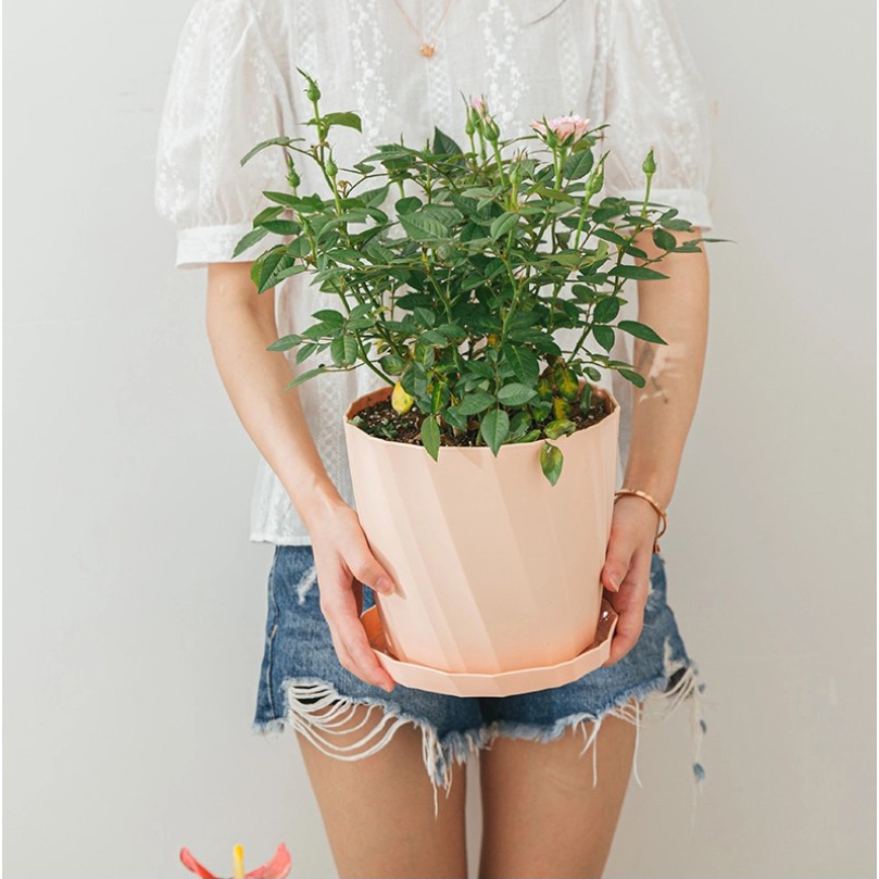กระถางต้นไม้ กระถางต้นไม้พร้อมถาดรอง กระถางดอกไม้เล็ก กระถางตั้งโต๊ะ GG-222