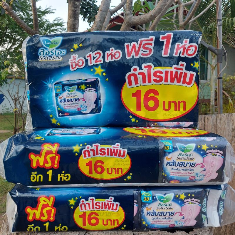 🔥โปรลดพิเศษ ฟรี 1 ลดราคา Laurier🔥ผ้าอนามัย ลอรีเอะ กลางคืน 30 ซม ยกแพค ×12 ห่อฟรี 1 ห่อ 🔥🔥