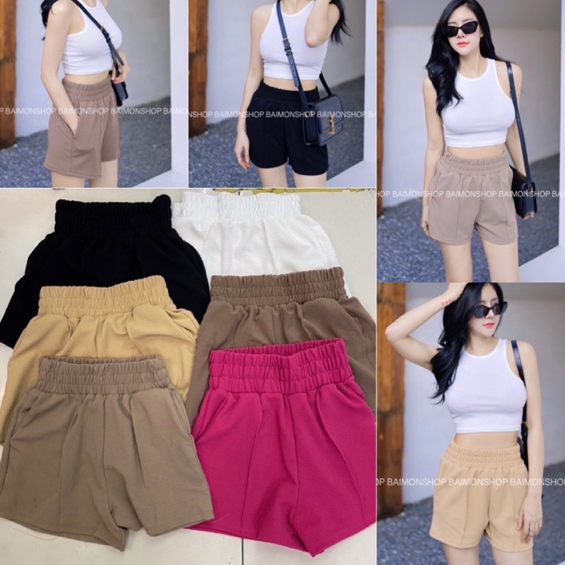 AimornShopกางเกงขาสั้น ขอบใหญ่เอวสูง❤️❤️ผ้ามูวเวฟสุดฮิต ด้านหลังเป็นยางยืดนะคะ งานดีสุดๆ