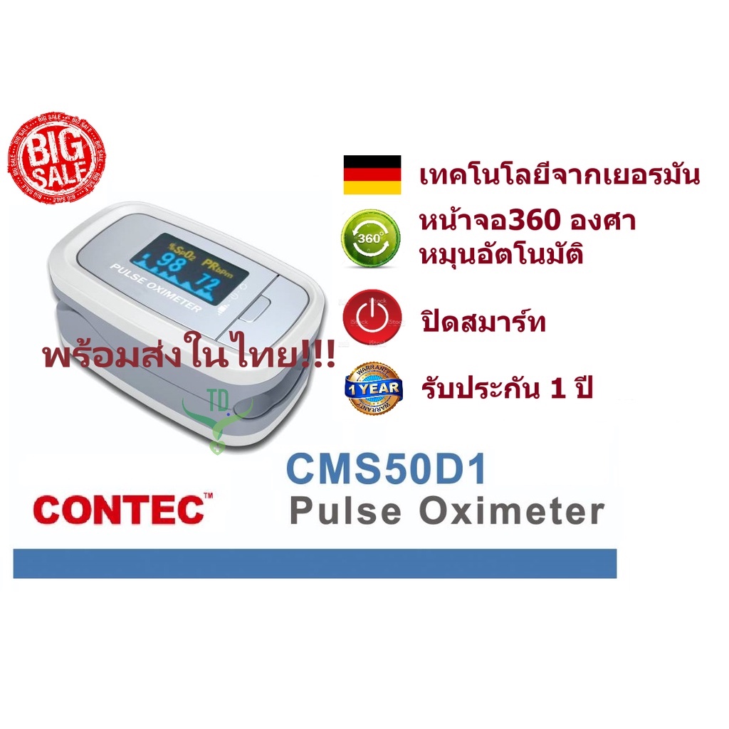 เครื่องวัดออกซิเจนในเลือดปลายนิ้ว Oximeter CONTEC CMS50D1 2022 New ลูกค้าให้คะแนน 5 อัพเดทล่าสุดเมื่อ 12/11/2022 สินค้าจัดส่งมาจาก ประเทศไทย