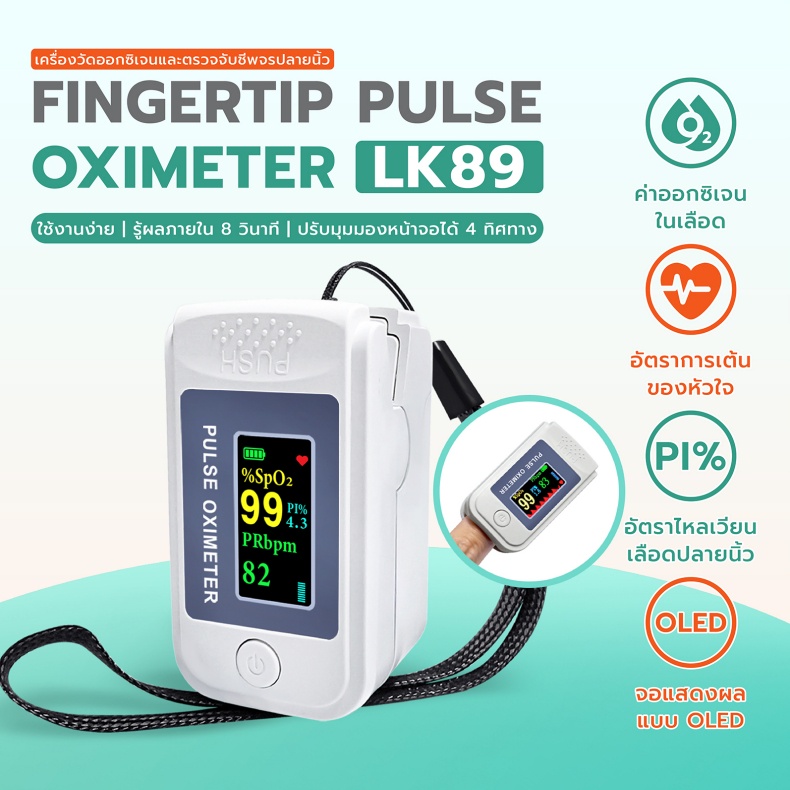 เครื่องวัดออกซิเจนปลายนิ้ววัดชีพจร วัดค่า SpO2และตรวจวัดชีพจรปลายนิ้ว Fingertip pulse oximeter LK89