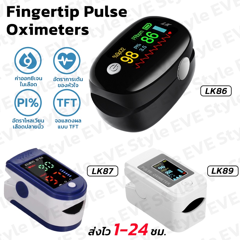 เครื่องวัดออกซิเจนปลายนิ้วOximeter วัดชีพจร วัดค่าSpO2 วัดชีพจรปลายนิ้ว Fingertip pulse oximeterLK87.88.89