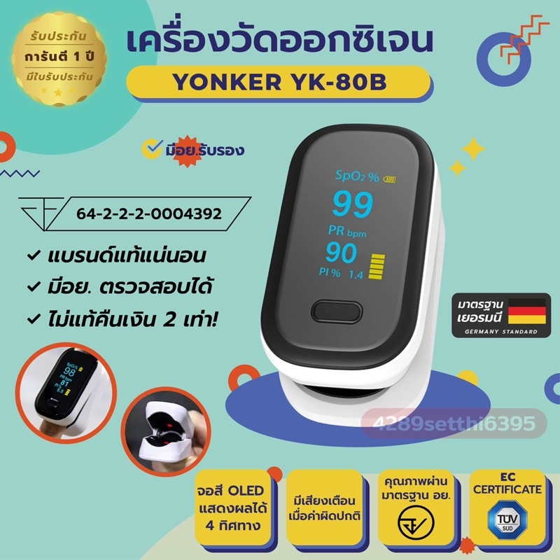 พร้อมส่ง มี อย เครื่องวัดออกซิเจน Yonker YK-80B,YK-82C เครื่องวัดออกซิเจนปลายนิ้ว รับประกัน 1 ปี ลูกค้าให้คะแนน 4.9 อัพเดทล่าสุดเมื่อ 12/11/2022 สินค้าจัดส่งมาจาก ประเทศไทย