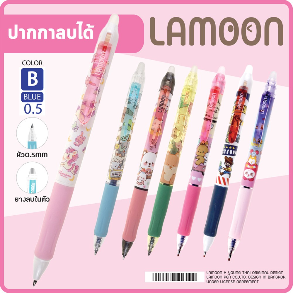 Lamoon ปากกาลบได้ หมึกเจล แบบกด 0.5 มม หมึกน้ำเงิน ลิขสิทธิ์แท้ น่ารักมาก เลือกแบบได้