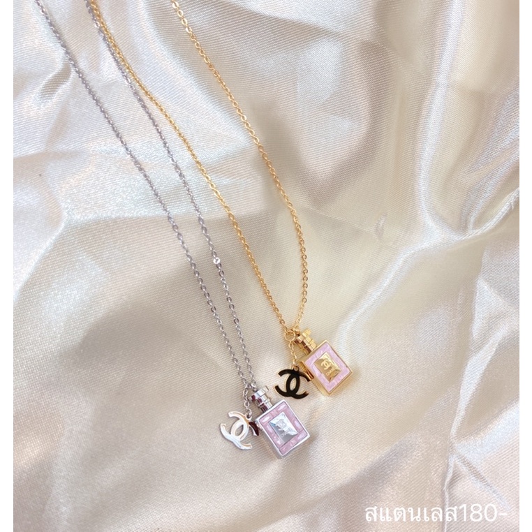 สร้อยคอ สร้อยแฟชั่น สร้อยงานจี้ห้อย งานจี้ลายขวดนำ้หอมงานเพชรเหลี่ยม