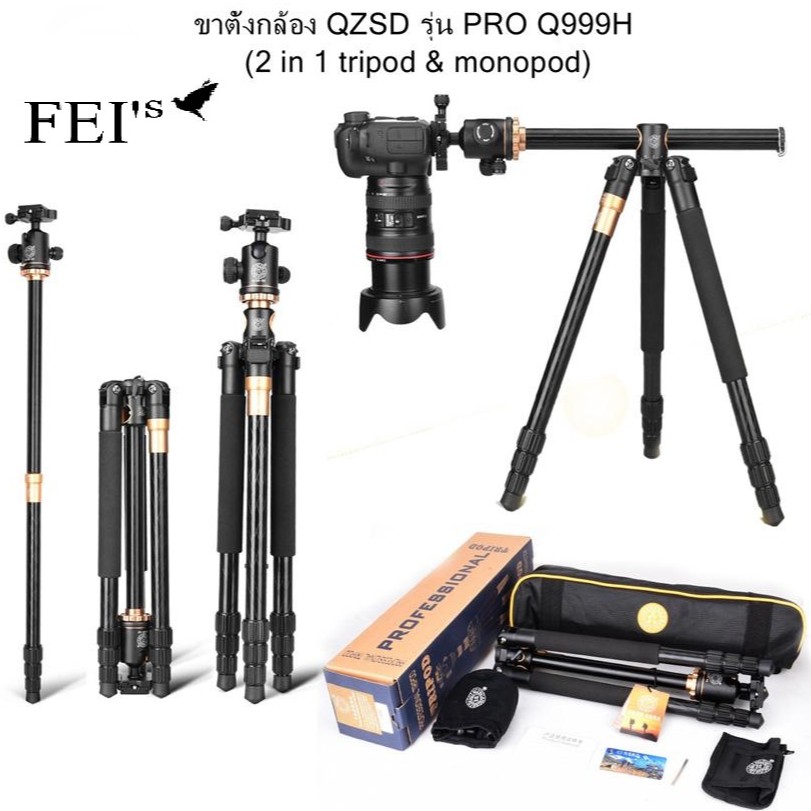 ขาตั้งกล้อง QZSD Q999H Pro Diamond Edition รุ่นใหม่ ปลายปี ขาตั้งกล้อง 2 in 1 Q-999H Tripod & Monopod aluminum Tripod