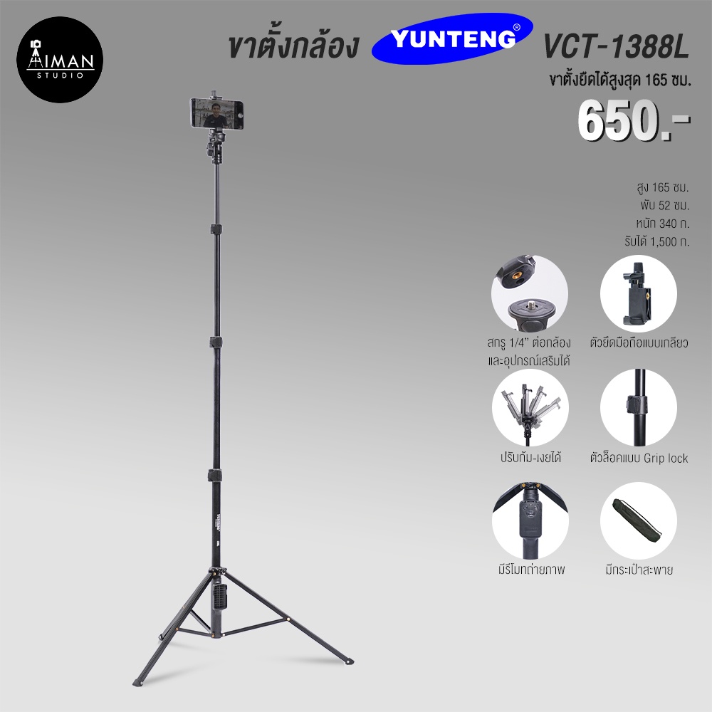 Yunteng VCT-5218 ขาตั้งกล้อง ขาตั้งมือถือมือถือ พร้อมรีโมทบลูทูธ TRIPOD