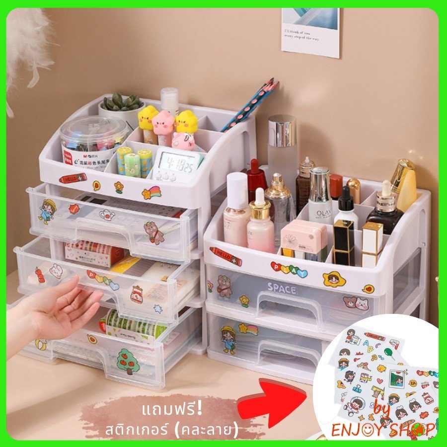🎁กล่องเก็บของอเนกประสงค์ เก็บเครื่องสำอาง เครื่องเขียน เปิดเข้า-ออกเป็นลิ้นชักเก็บของได้
