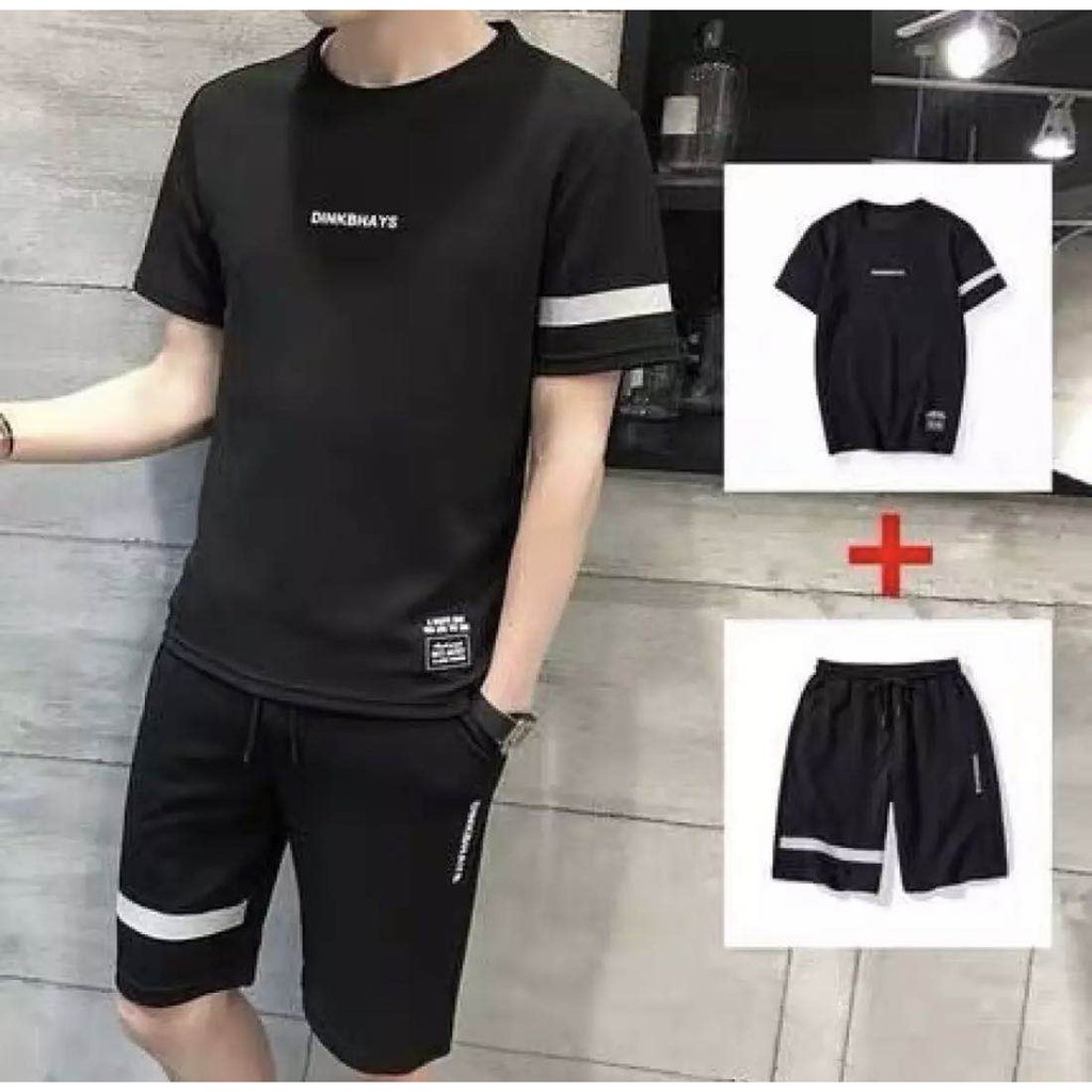 (ลูกค้าใหม่ 1 บาท) เสื้อ+กางเกงขาสั้น ผ้าเบา ไม่หด ไม่ย้วย เสื้อยืดคอกลมสีพื้น ชุดกีฬาผู้ชาย ชุด