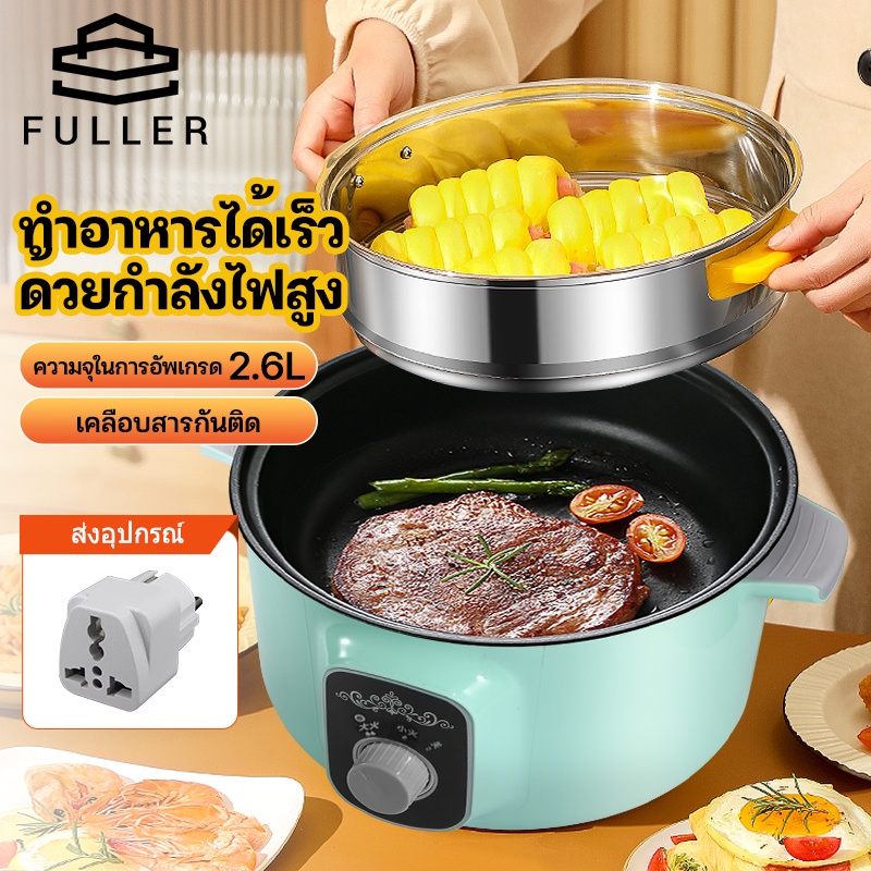 Full หม้อมินิไฟฟ้า 24ซม กระทะไฟฟ้าอเนกประสงค์ หม้อไฟฟ้า หุงข้าว อุ่น ตุ๋น ต้ม นึ่ง วัสดุคงทน /2.6L ไม่ติดหม้อ