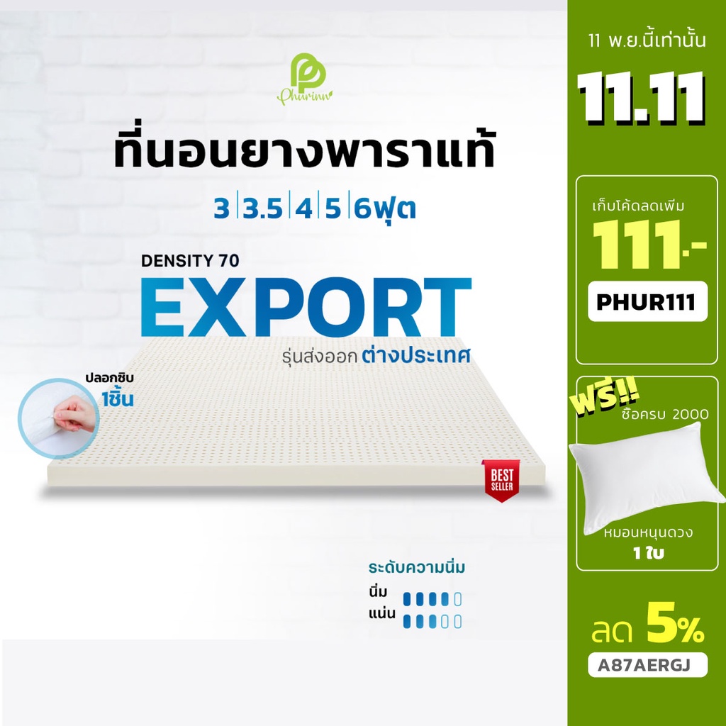 - • Phurinn Topper รุ่น Soft series ที่นอนยางพาราแท้ ทนทานมาก