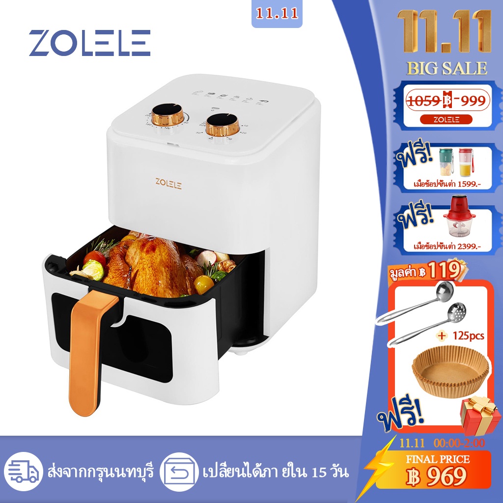 - 1. หม้อทอดไร้น้ำมัน Zolele ใช้การไหลเวียนของลมร้อนในการปรุงอาหาร ทำให้ไม่ต้องใช้น้ำมันและลดไขมันและแคลอรี่