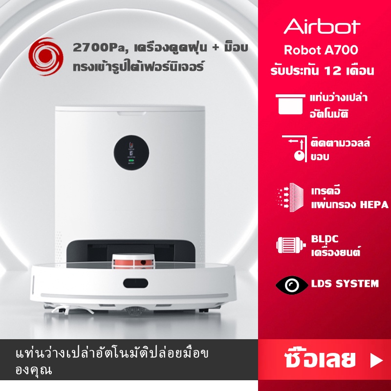 Airbot A800 หุ่นยนต์ดูดฝุ่นถูพื้น อัจฉริยะ โรโบร็อค