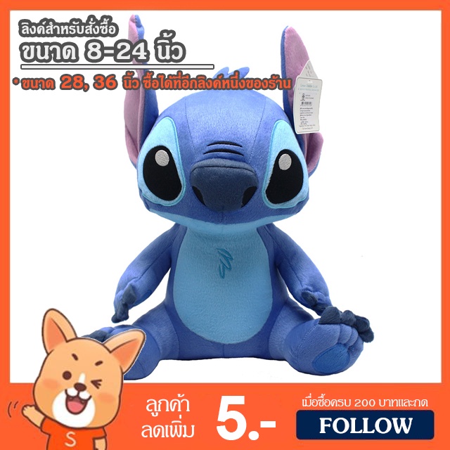 ตุ๊กตา สติช ท่านั่ง (ขนาด 8, 12, 16, 24 นิ้ว) ลิขสิทธิ์แท้ / ตุ๊กตา Stitch / ตุ๊กตา สติทซ์ / ตุ๊กตาสติช สติทซ์