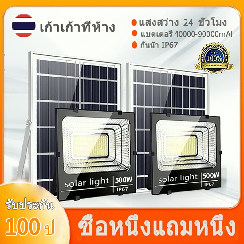【รับประกัน100ปี】500W ไฟโซล่าเซลล์ Solar Light โคมไฟโซล่าเซลล์ ไฟสปอร์ตไลท์ กันน้ำกลางแจ้ง ป้องกันฟ้าผ่า IP67 พร้อมรีโมท