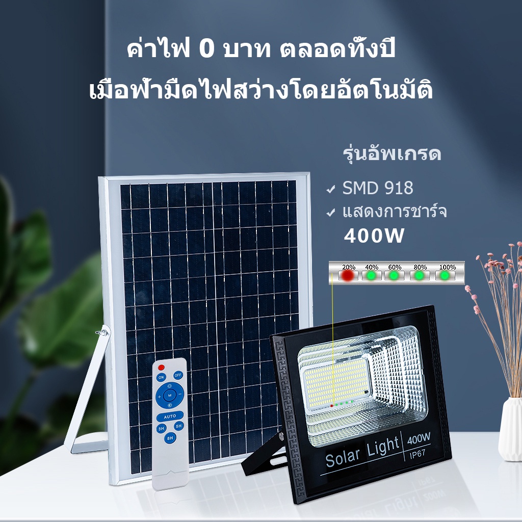 - • ไฟโซล่าเซลล์ 500W และ 400W นั้นทรงพลังและมีประสิทธิภาพ