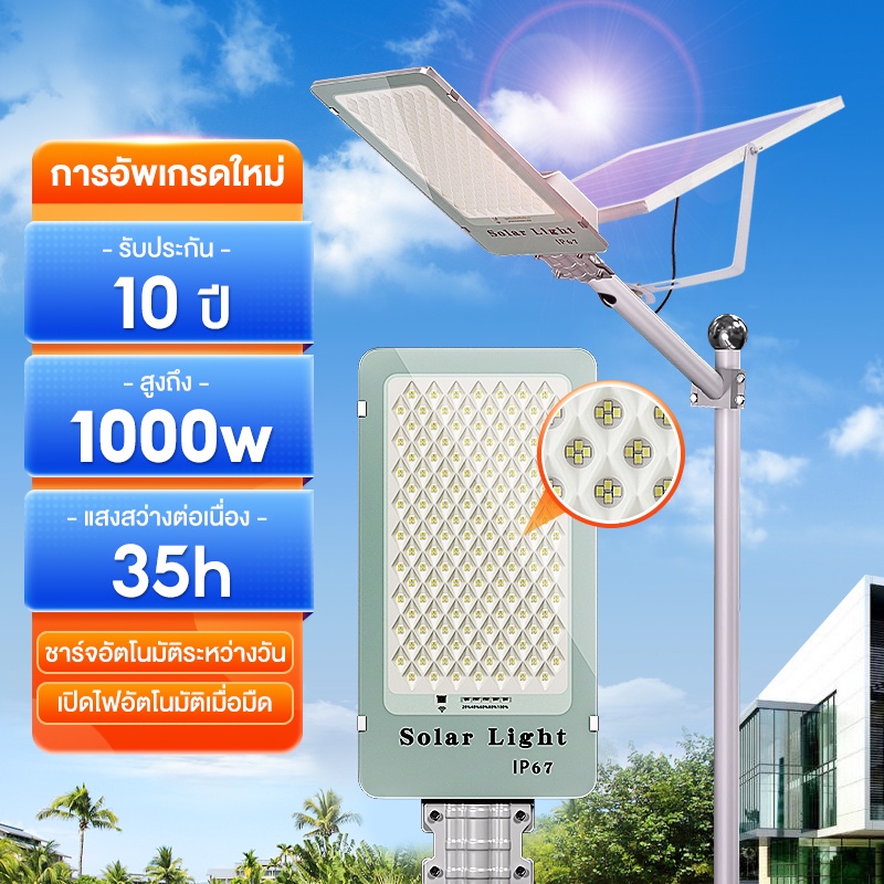 [รับประกัน 10 ปี] ไฟถนนโซล่าเซล1000W 600W โคมไฟโซล่าเซล ลูกปัดโคมไฟขนาดใหญ่ ไฟถนนพลังงานแสงอาทิตย์ Solar Light ไฟถนน LED