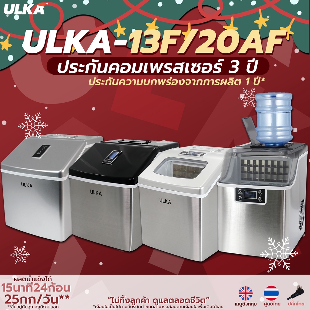 เครื่องทำน้ำแข็งULKA-13F(W)(B)(P) เป็นอีกหนึ่งแบรนด์เครื่องทำน้ำแข็งยอดนิยม เครื่องทำน้ำแข็งเป็นที่รู้จักในด้านความจุขนาดใหญ่และเวลาในการแช่แข็งที่รวดเร็ว เครื่องทำน้ำแข็งยังค่อนข้างเงียบ จึงเหมาะสำหรับผู้ที่ไม่ต้องการให้เสียงดังรบกวน เครื่องทำน้ำแข็งยังมีราคาย่อมเยา ทำให้เป็นตัวเลือกที่ดีสำหรับผู้ที่มีงบจำกัด น่าเสียดายที่เครื่องทำน้ำแข็งมักจะเทอะทะ ดังนั้นอาจไม่ใช่ตัวเลือกที่ดีที่สุดสำหรับผู้ที่มีพื้นที่จำกัด