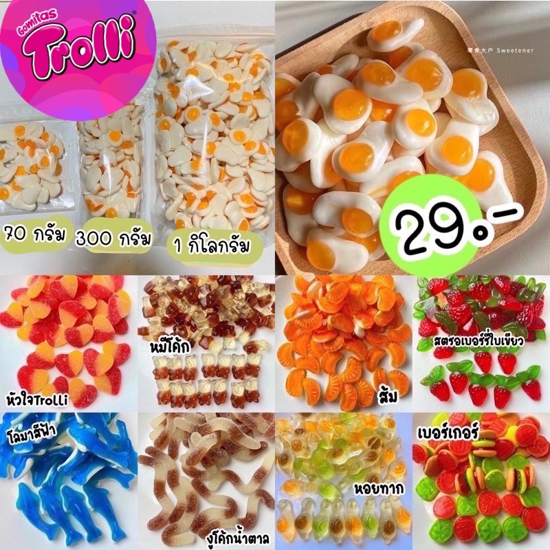 เยลลี่ Trolli ของแท้‼️ 70-80 กรัม แบ่งขาย เคี้ยวเพลินมีหลายแบบหลายรสชาติ ราคาถูก หนึบๆหนับๆ หอมมากค่ะ