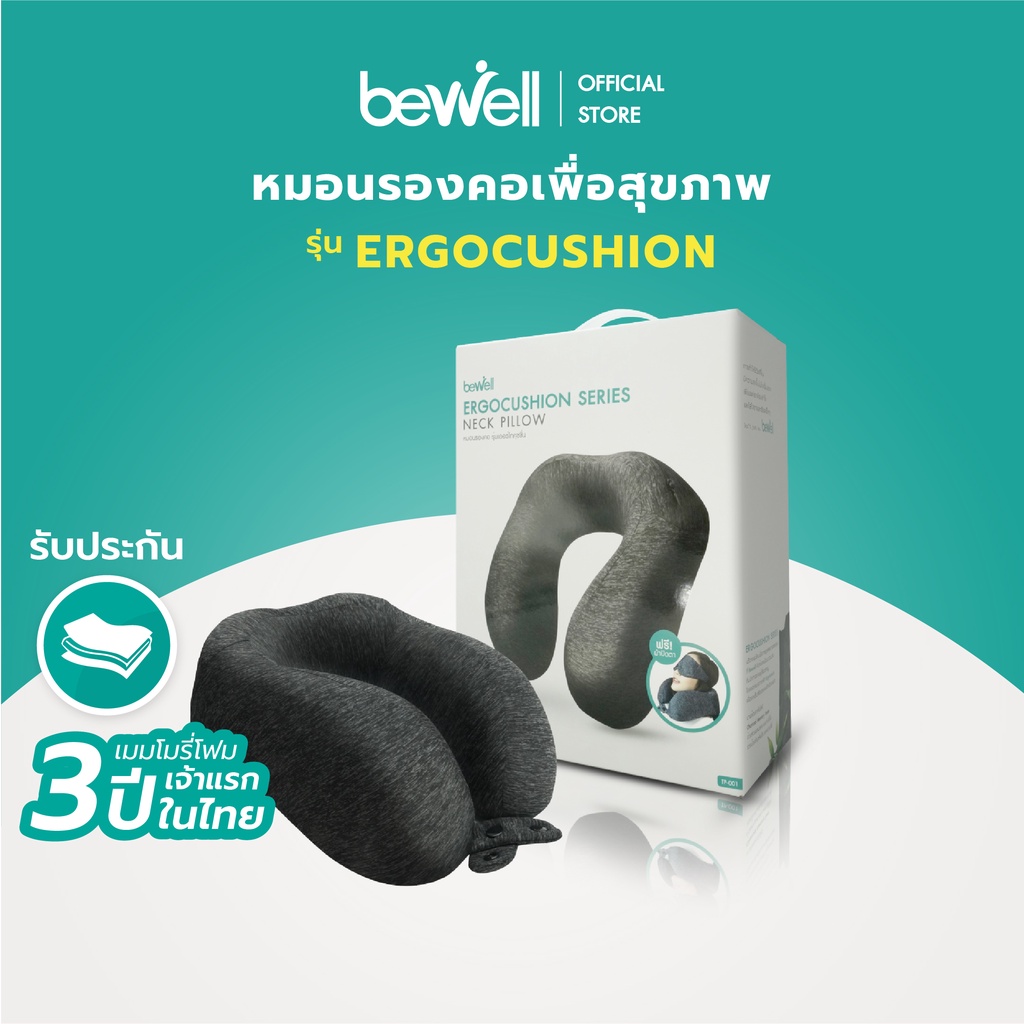 Bewell หมอนรองคอ อัพเกรดรุ่น Ergocushion เมมโมรี่โฟมชาโคล รองรับสรีระได้ดียิ่งขึ้น เนื้อผ้าเย็น ถอดซักได้