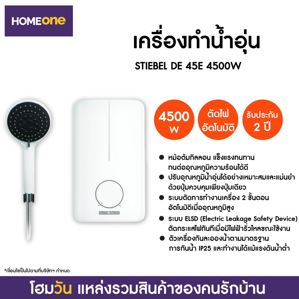 อุปกรณ์สินค้าภายในกล่อง : เครื่องทำน้ำอุ่น STIEBEL DE 45E 4500W